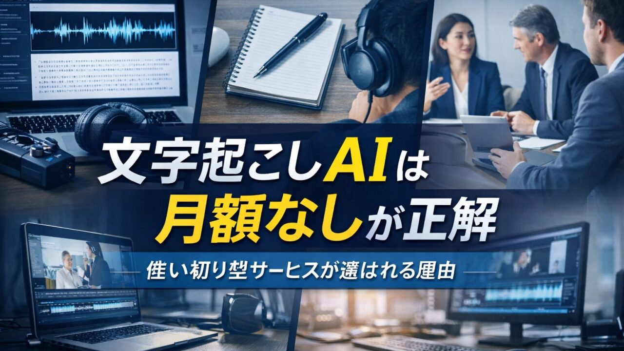 この記事では、文字起こし・AI・月額なしという条件にこだわって、固定費ゼロで使えるサービスの特徴やメリット、どんな人に向いているのかを分かりやすく解説します。